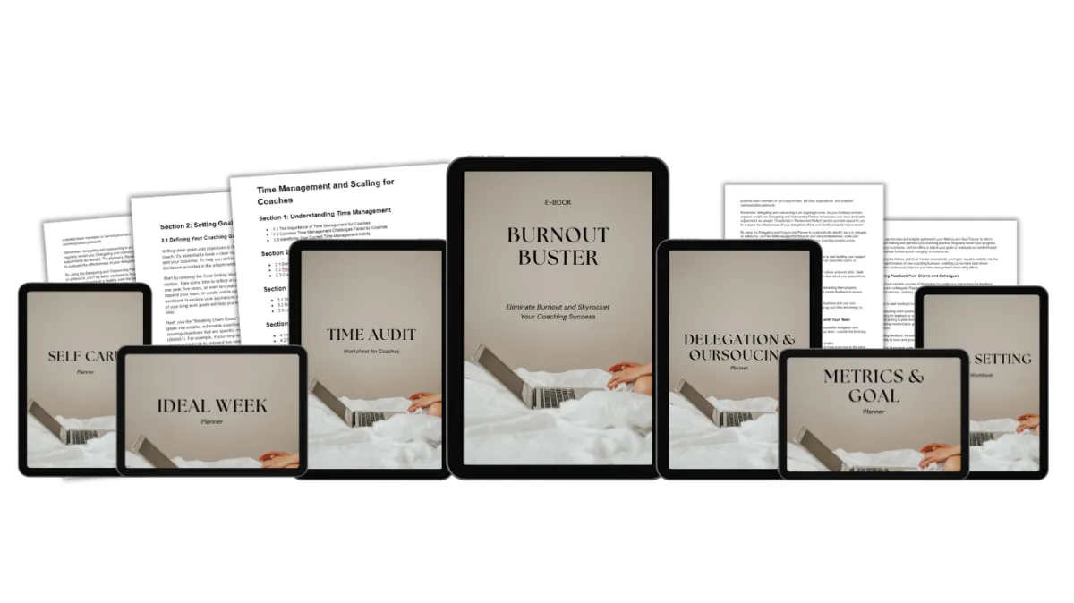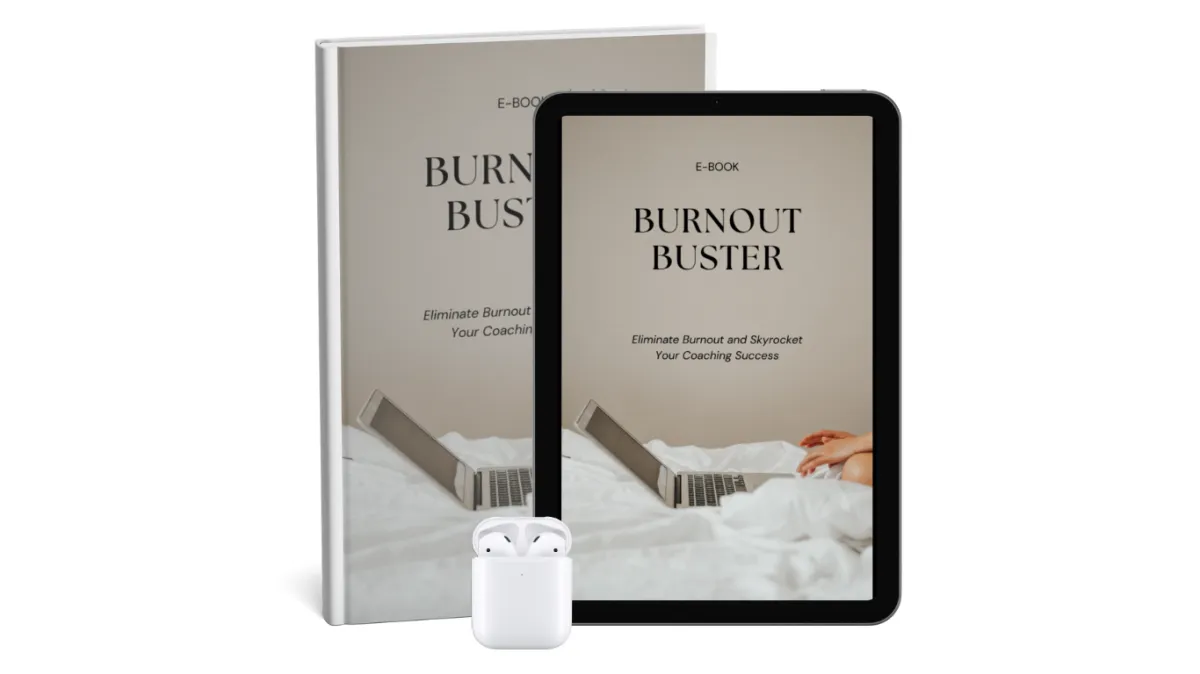 The Burnout Buster is an eBook designed specifically for coaches to eliminate burnout, improve time management, and create a sustainable coaching business. It provides practical tools, strategies, and insights to help you reclaim your energy, set boundaries, and scale your business without sacrificing your well-being.